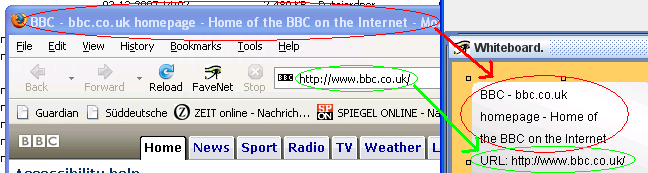 A new item appears in the newly opened project - at the top left of each open viewer. The name of the new item is taken fromthe title of the website being shown in Firefox, and the aspect "URL" contains its URL. Displaying a FaveNet icon in Firefox (optional)