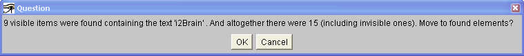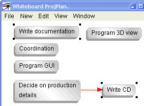 Invisible items are those that have been filtered out by the "filter function". If your window is too small to show all items, you can choose "OK" to "move" to the elements that were found. This means that the view is zoomed so that all found items fit into the screen. The view is scrolled so that the right-most found item is at the right-hand edge of the view and so that the upper-most found item is next to the top edge of the window. Items containing the required texts are "selected"; they get black squares at their corners. Here "Write documentation" and "Write CD" are selected: