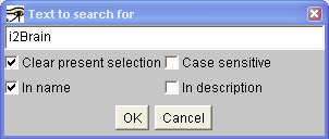 You can search for items using texts in their names and/or their descriptions. Please note that this function should NOT be used to find items which have a certain value in a certain aspect (e.g. items where "Who" is set to "John"). Use the filter function instead. Use:In a view's menu, choose "Edit | Find". The following dialog appears: