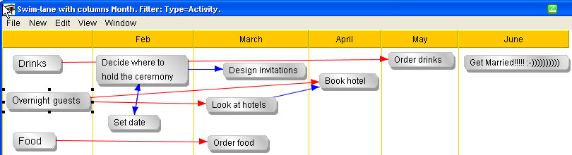 You'll probably want to plan when certain preparations should be carried out. Here we used months on the time-axis: